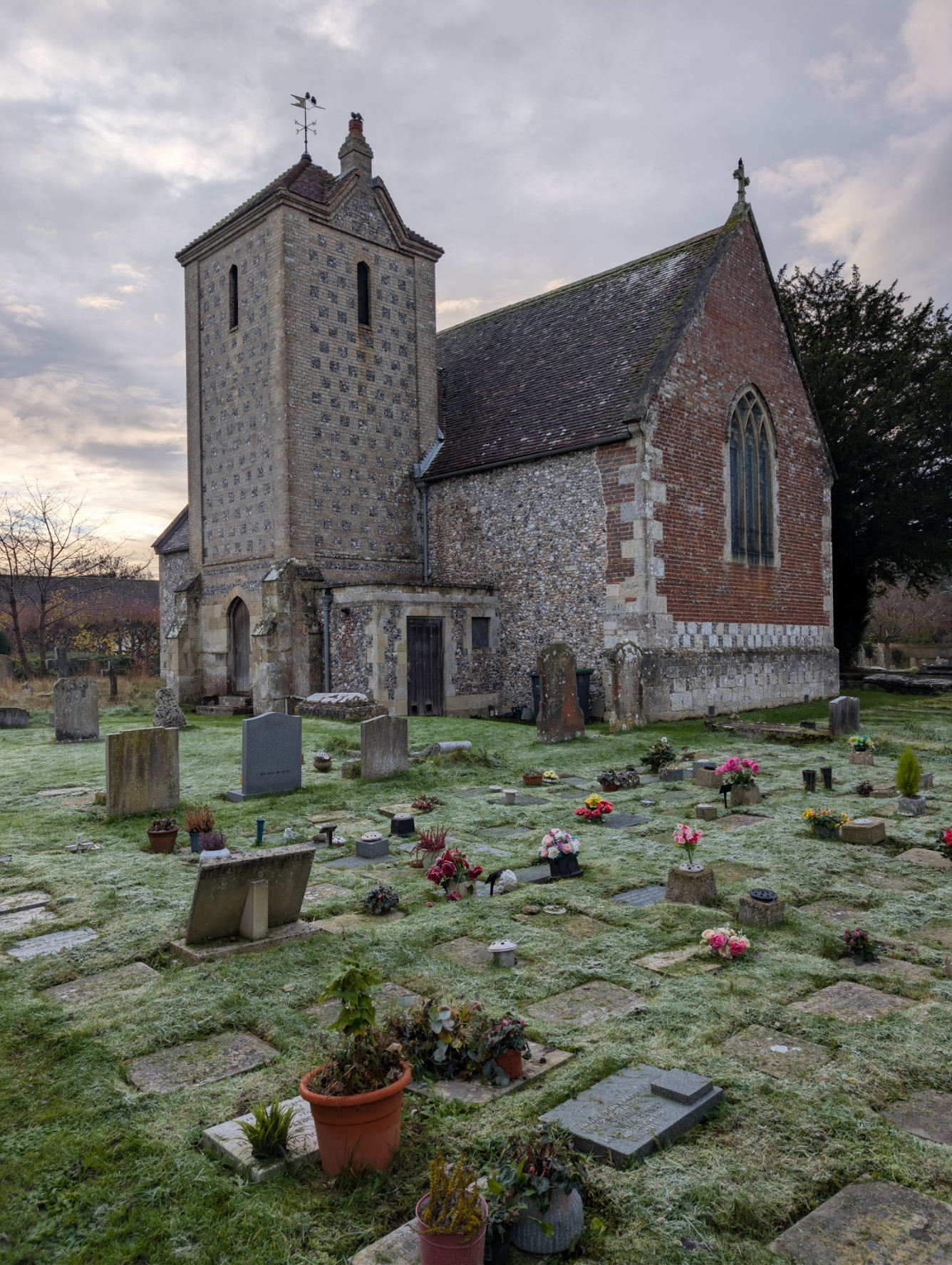 Restoration was undertaken in 1873-4 by the well-known architect William Butterfield. The gallery was removed and pews, pulpit, reading desk and othe woodwork replaced by the present ones. The east and west walls were re-built. A new porch replaced the former leanto on the south side of the nave. The tower, re-built in the early 19th century, contains two bells, one 14th century and the other cast in Salisbury in 1692. All the stained glass windows, altar triptychs and two altar frontals are early 20th century work by the artist Eleanor Warre, who lived nearby at The Old Parsonage.